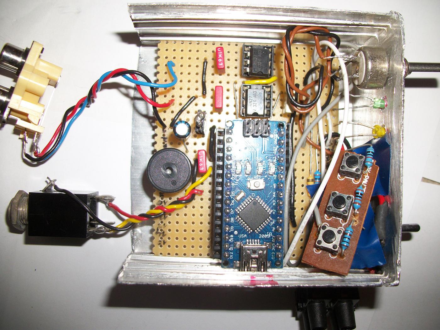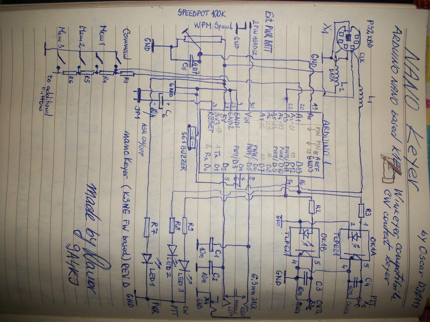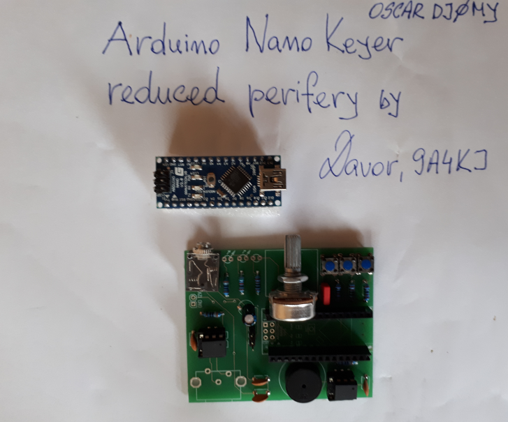 Electronic iambic keyer with Arduino Nano based on software from Oscar (DJ0MY). Fully functional, tested and still working after long time of use.